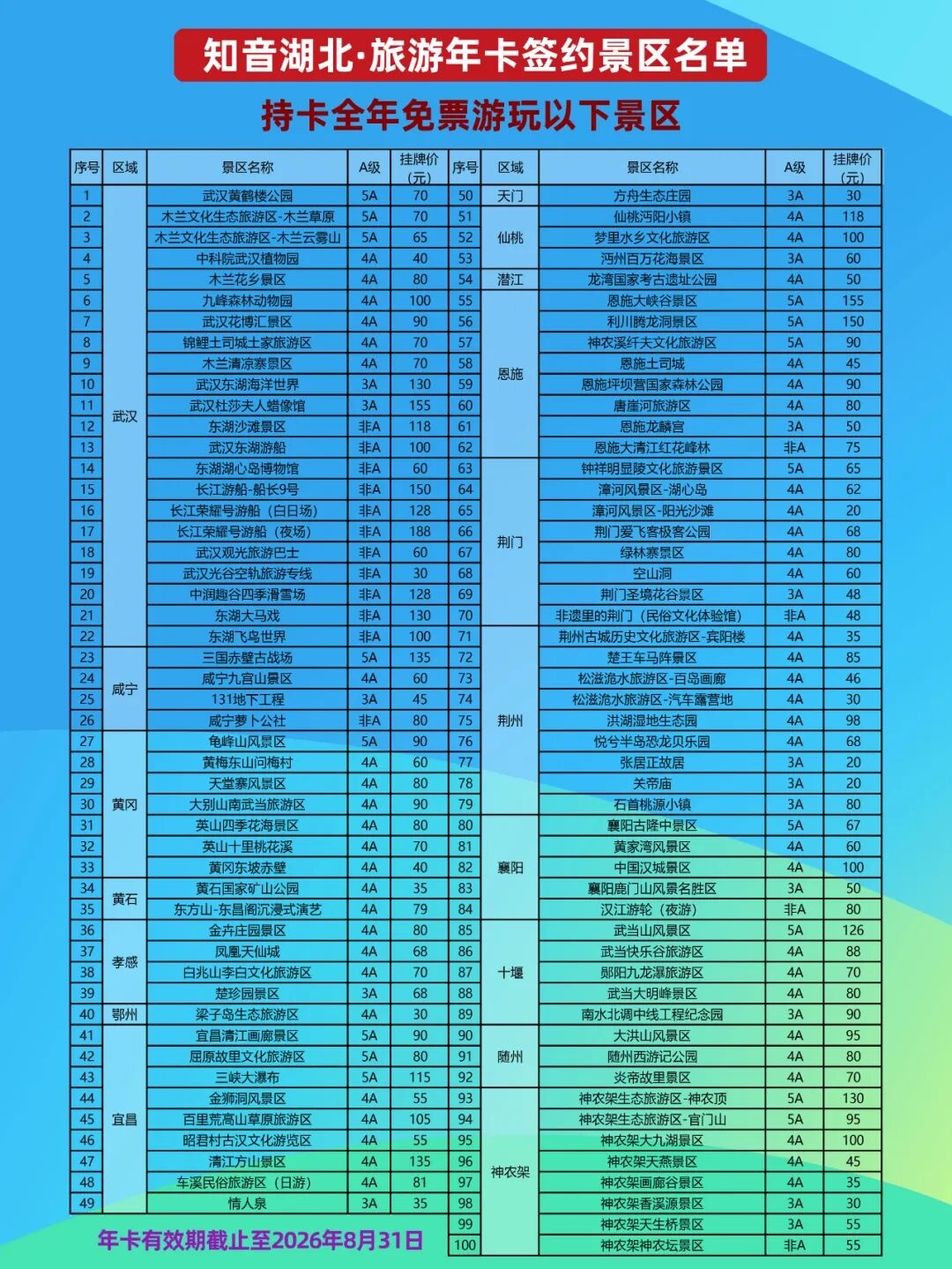 据了解,这份为新生专属定制的“见面礼”权益十分丰厚,激活后可在2026年8月31日前,免门票游览湖北省内100家高品质景区,其中包括16家5A级景区、52家4A级景区,以及多家主题乐园、长江夜游项目等,整体价值远超年卡本身。此次延长领取时间,是主办方为最大限度惠及学子、回应同学们的积极参与而特别作出的安排。